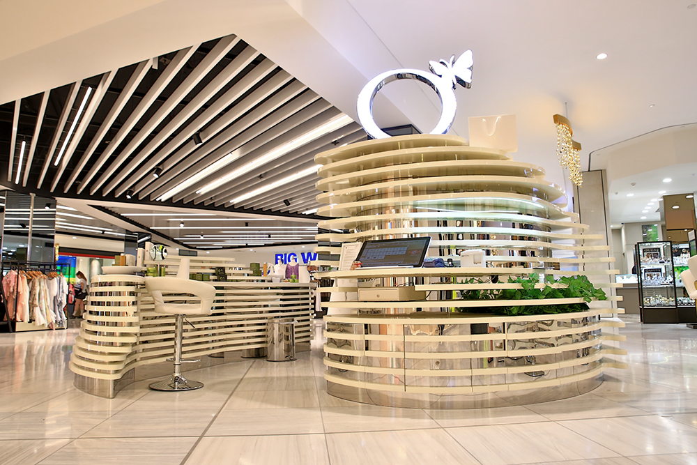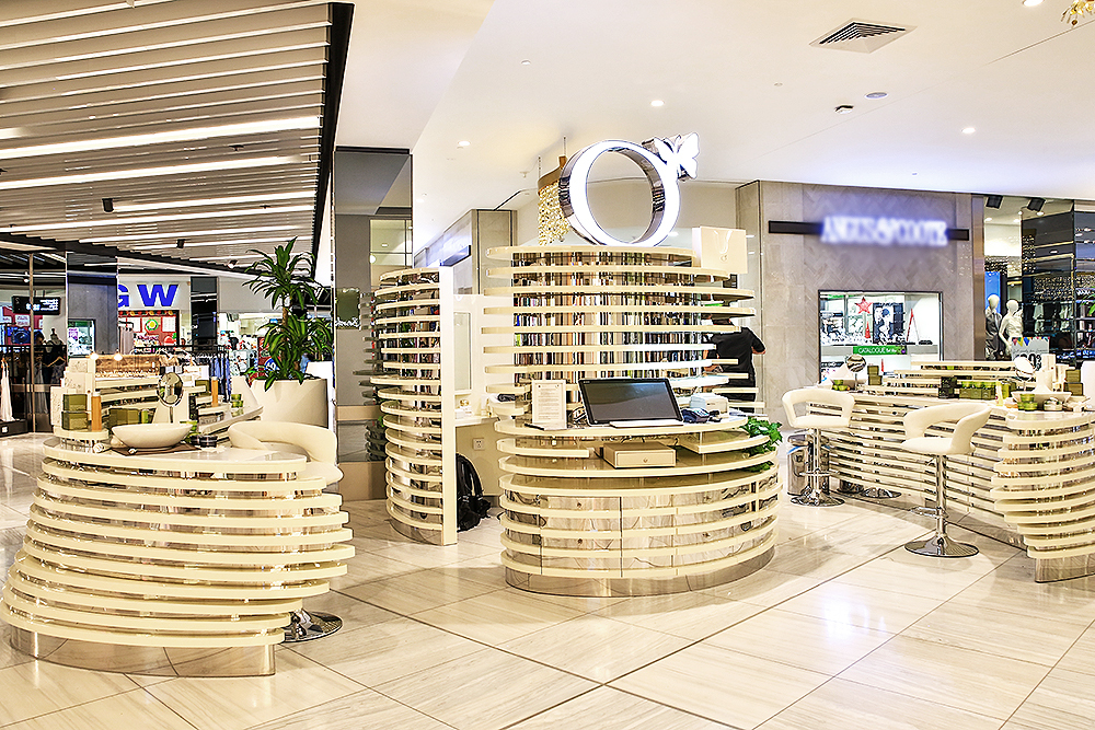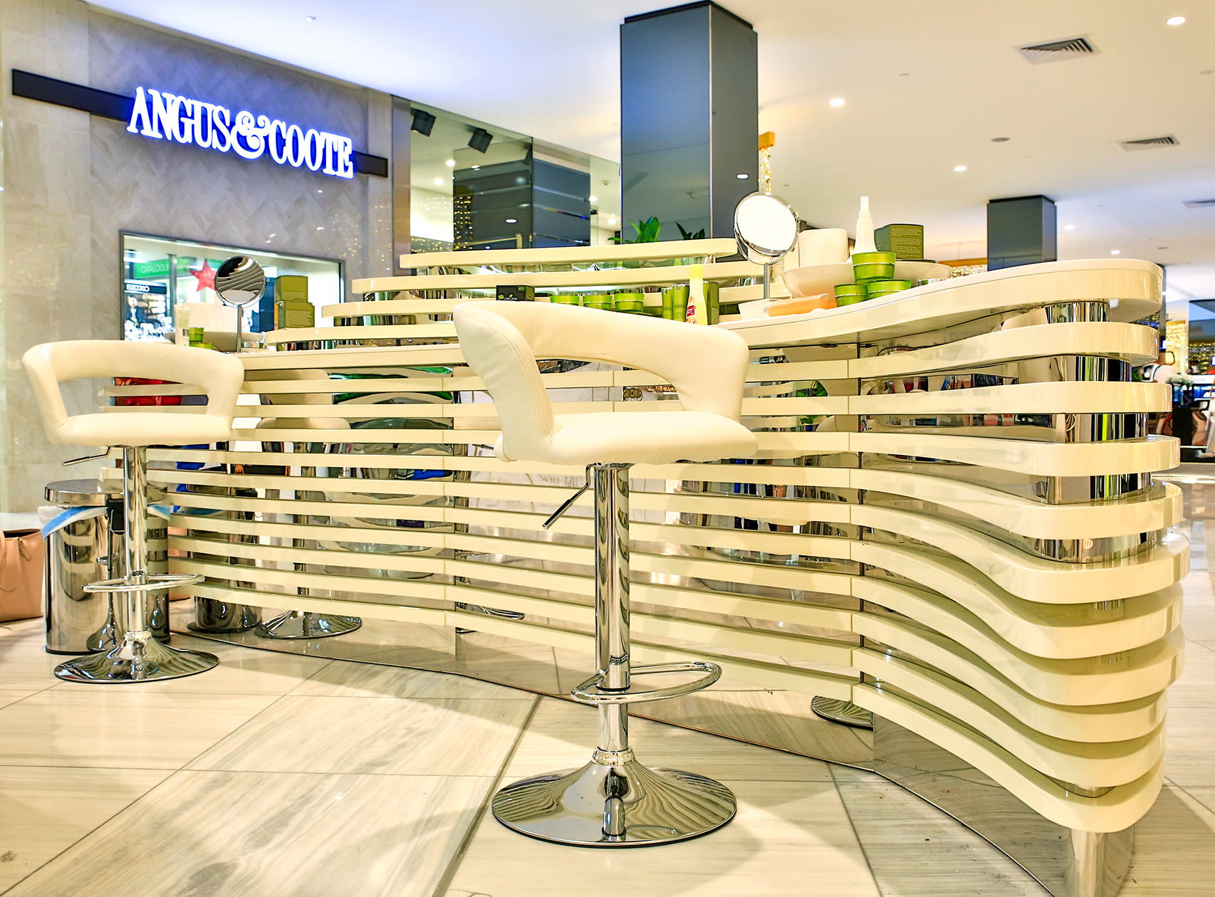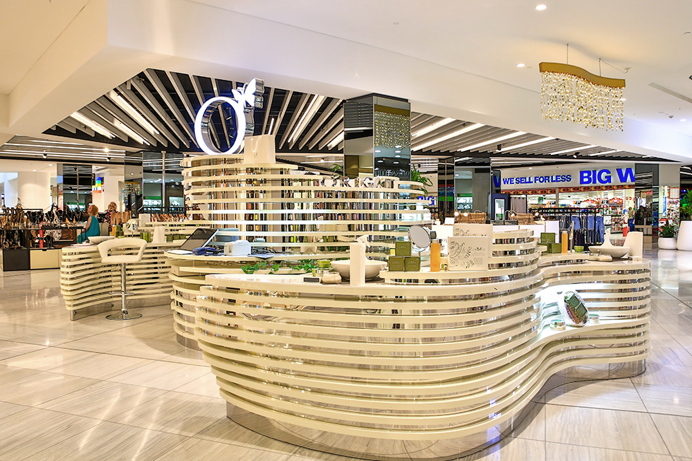 M2 Display presents a bespoke retail solution for ORIGANI, the prestigious Australian skincare brand. This custom-designed kiosk seamlessly blends stainless steel’s modern durability with the warm elegance of wood paint finish, creating a sophisticated brand environment that mirrors ORIGANI’s commitment to natural luxury. The unique curved design forms an inviting product display space, featuring integrated totems and specialized shelving to showcase the complete skincare collection. Perfect for high-end shopping malls and department stores, this kiosk serves as a complete brand touchpoint that enhances product visibility while providing an immersive customer experience. Each element is strategically crafted to communicate ORIGANI’s premium positioning through superior materials and innovative retail design.