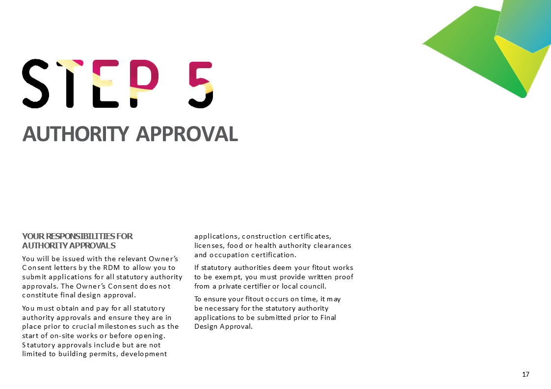 - Topics Covered:This guide, Site Specific Guide, program milestones, tenancy drawings, shopfitter status, authority approvals, and the Services and Sustainability Checklist.