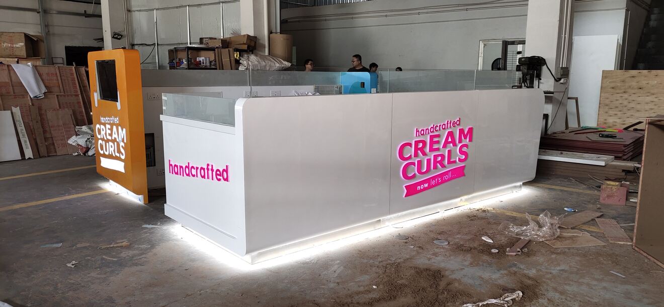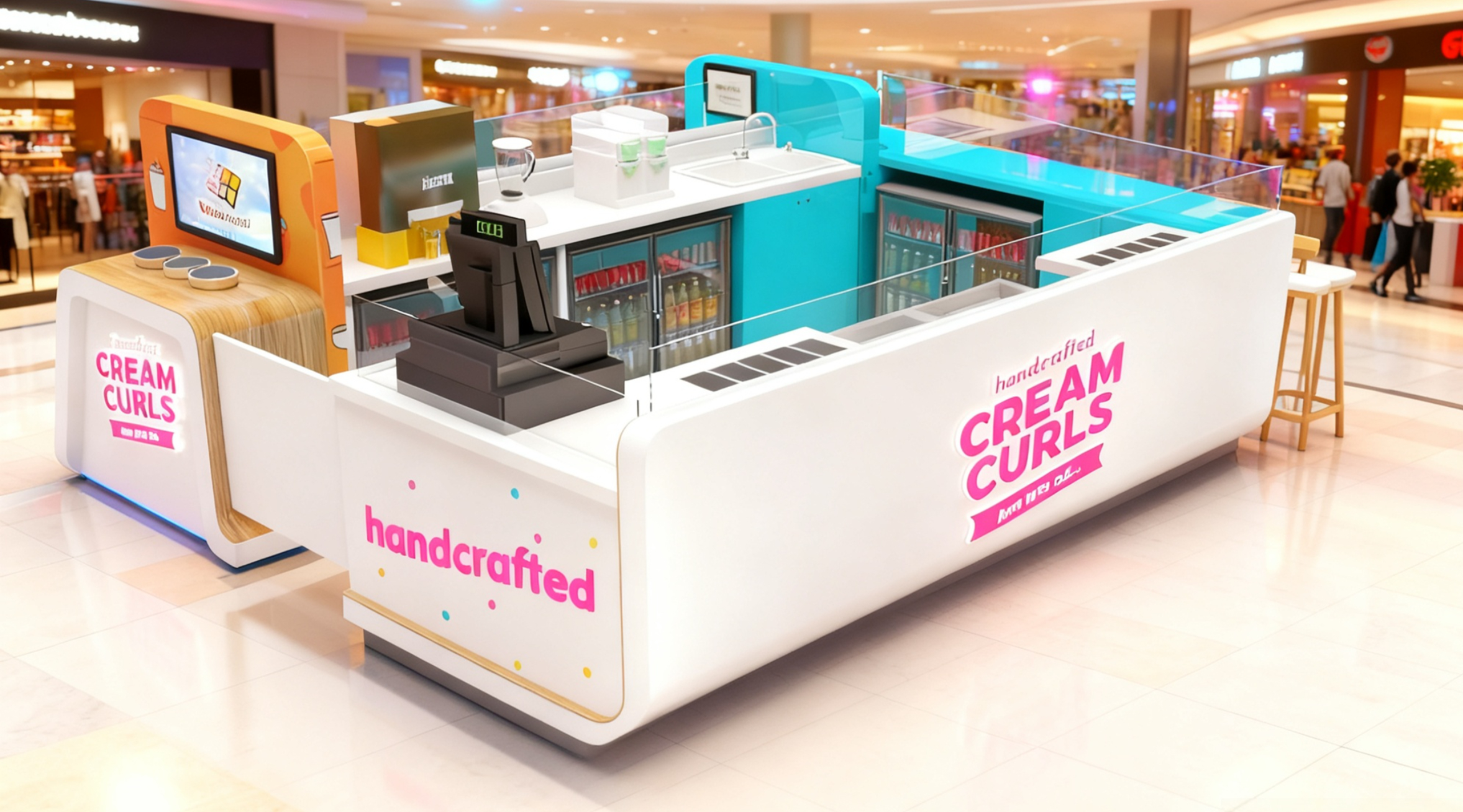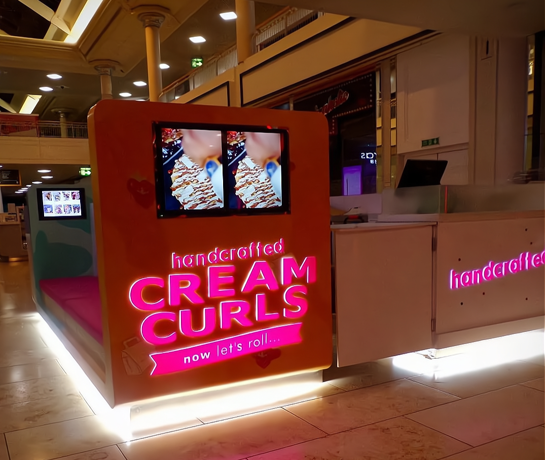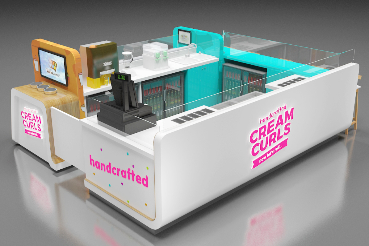 Cream Curls started as a small shop in Heaton, Newcastle, and quickly grew into a popular franchise with 9 locations nationwide. Known for their handcrafted ice cream rolls and unique desserts, the brand wanted a kiosk that would stand out in malls and events while reflecting their innovative and vibrant identity.