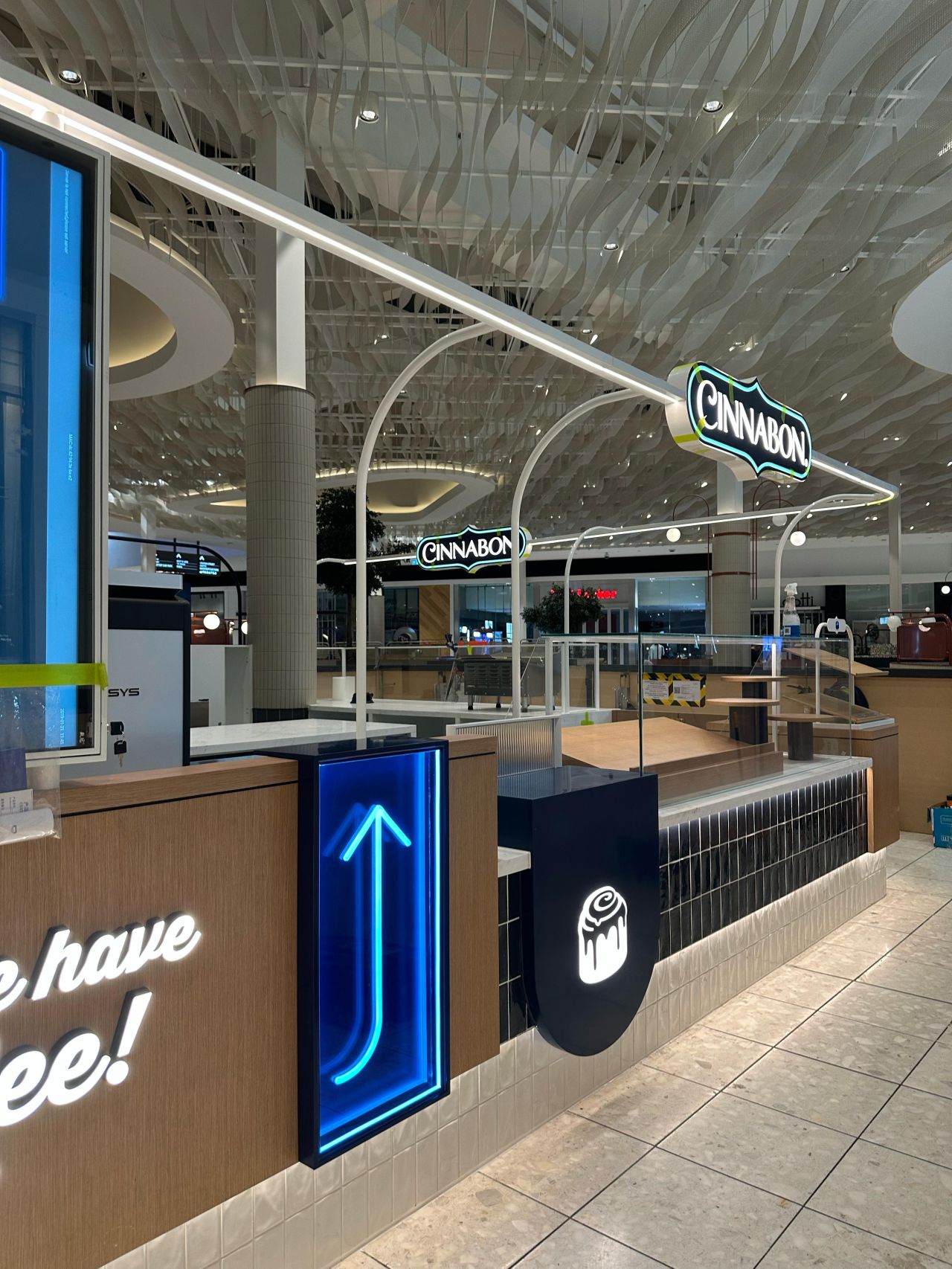 Cinnabon is a globally recognized bakery brand, widely known for its signature cinnamon rolls and strong brand identity. In busy shopping malls and commercial centers, the kiosk format allows brands like Cinnabon to operate efficiently while maintaining high visibility and consistent customer experience.