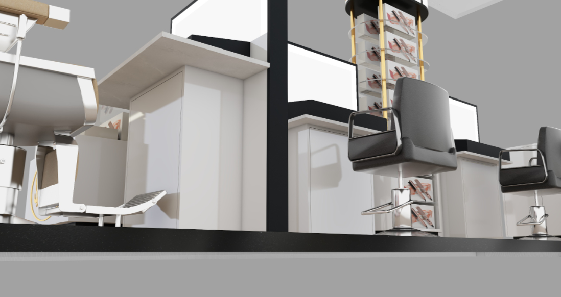 Compact Yet Spacious: Optimized storage and workspace to make the most of the salon’s available area.