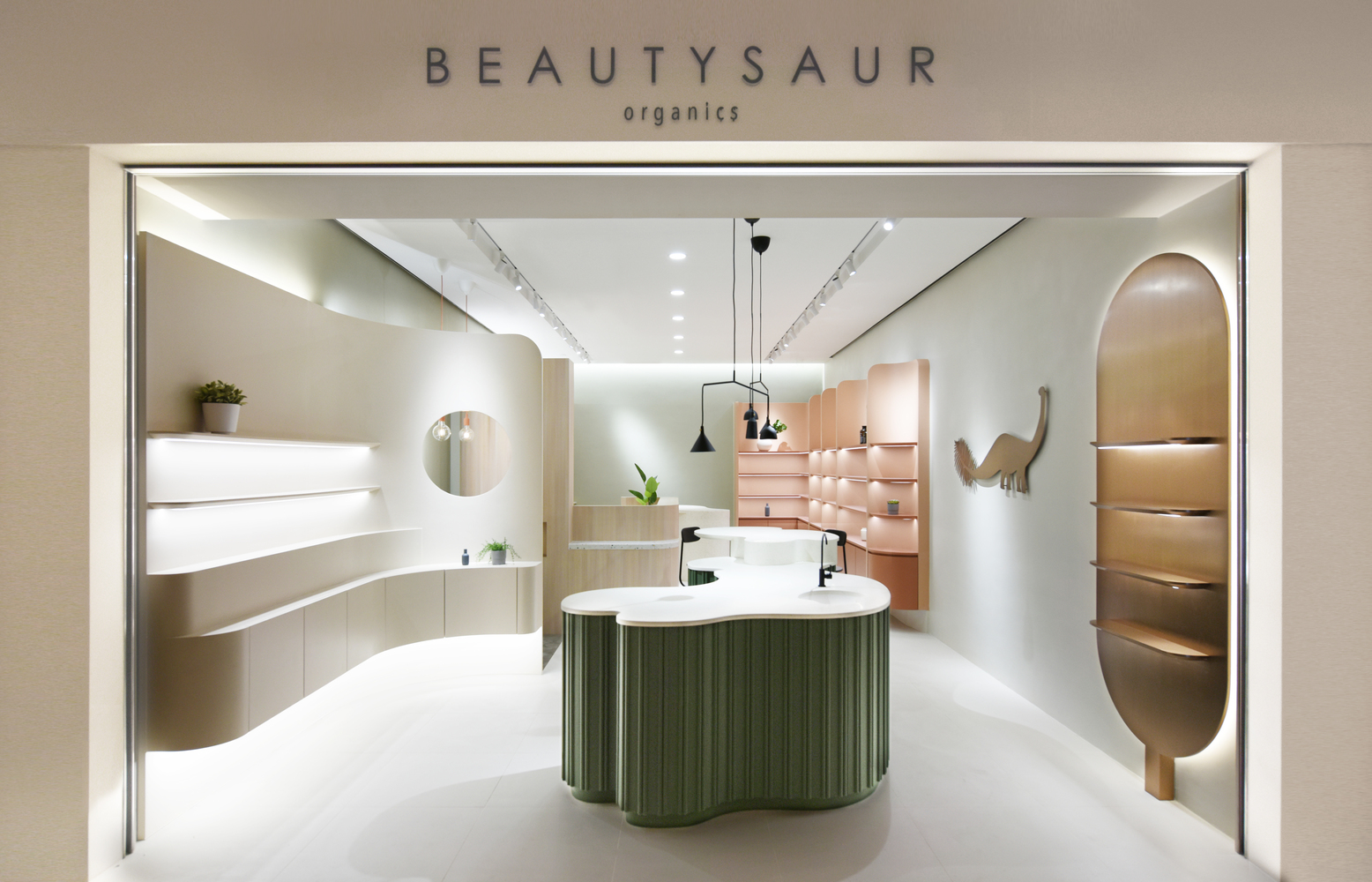 This beauty salon design maximizes display, storage, and functionality, offering a modern and efficient layout for beauty salons.