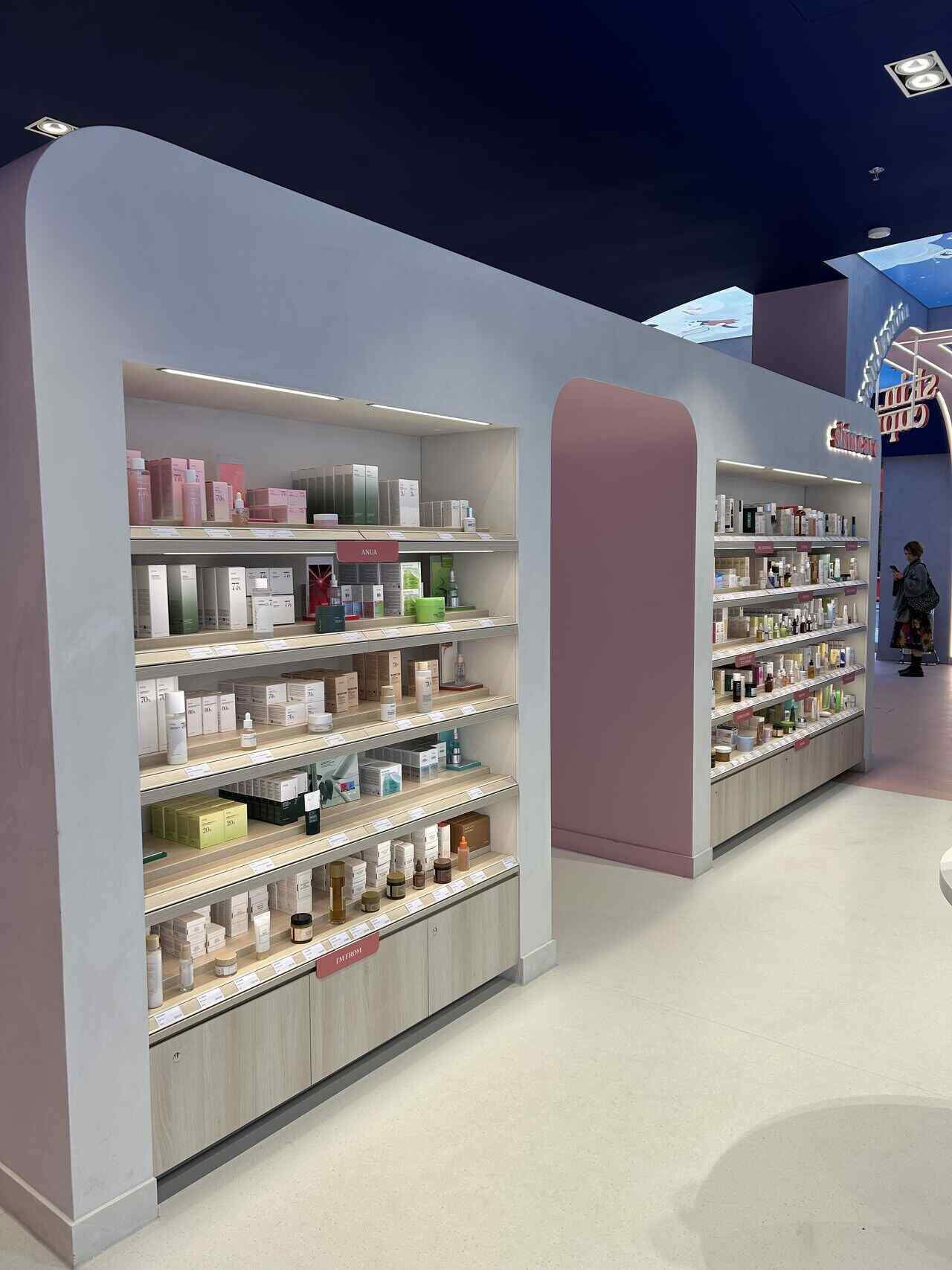 Sensory Journey & Discovery: The layout likely encourages exploration, mimicking the rewarding experience of browsing a beautifully curated website. Interactive zones for testing textures, “skincare fridge” displays, or areas organized by routine (like the famous 10-step method) can transform shopping from transactional to educational and playful.